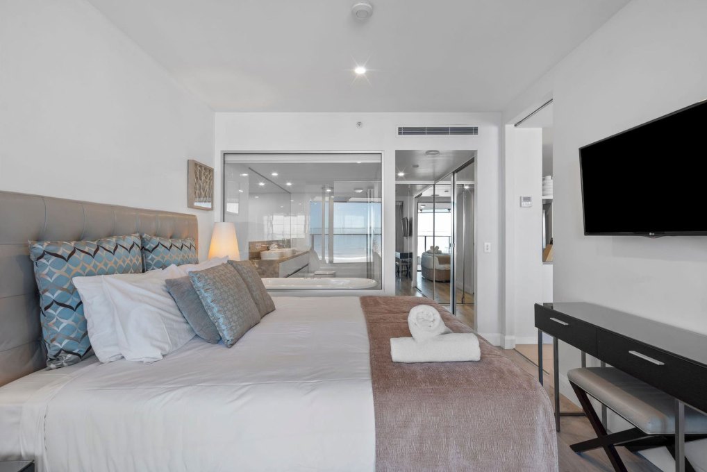 The master bedroom contains a King bed with ensuite . The Master Bedroom has floor-to-ceiling glass doors that open to the balcony. Wake up to sunrise over the Pacific Ocean.