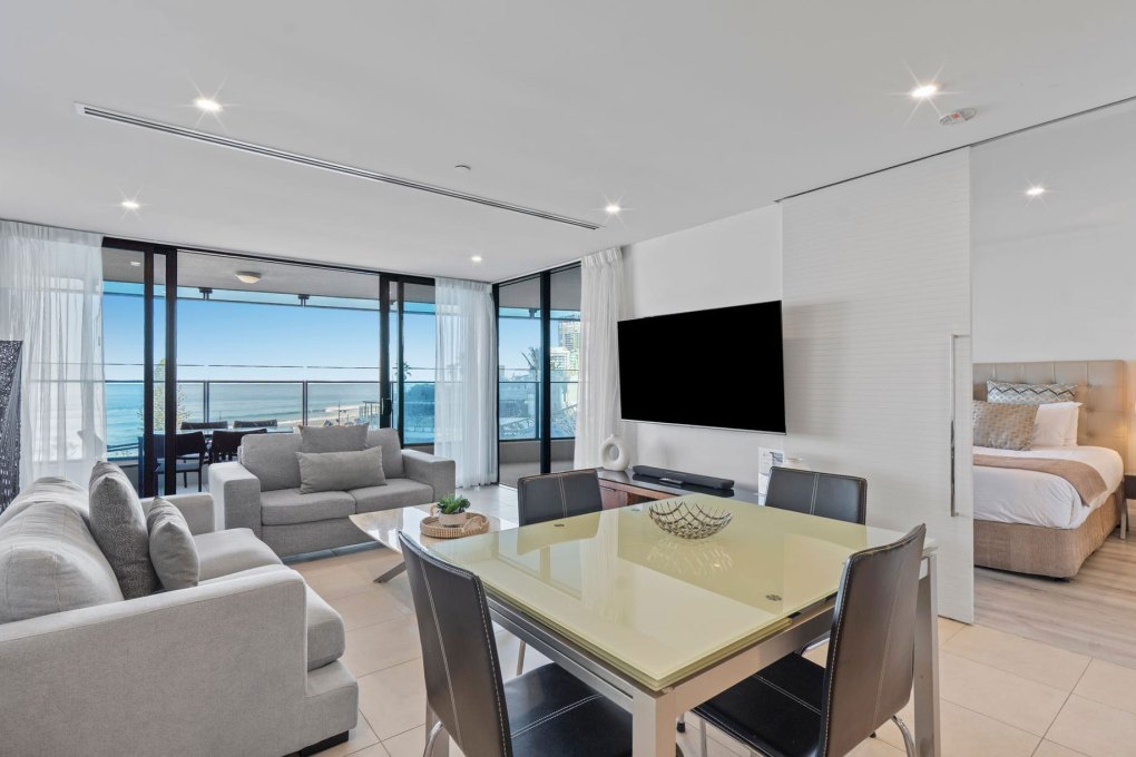 Step into relaxed coastal luxury at Esplanade (Soul), Apartment 0402—a beautifully presented 2-bedroom, 2-bathroom apartment located on the 4th floor of one of Surfers Paradise’s most prestigious beachfront towers. With sparkling views directly over Soul’s iconic swimming pool and the golden sands of Surfers Paradise Beach just steps away, this stylish retreat is ideal for families, couples, or small groups seeking comfort, convenience, and a premium holiday experience.