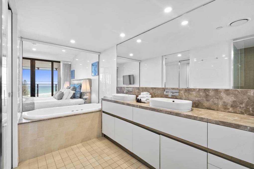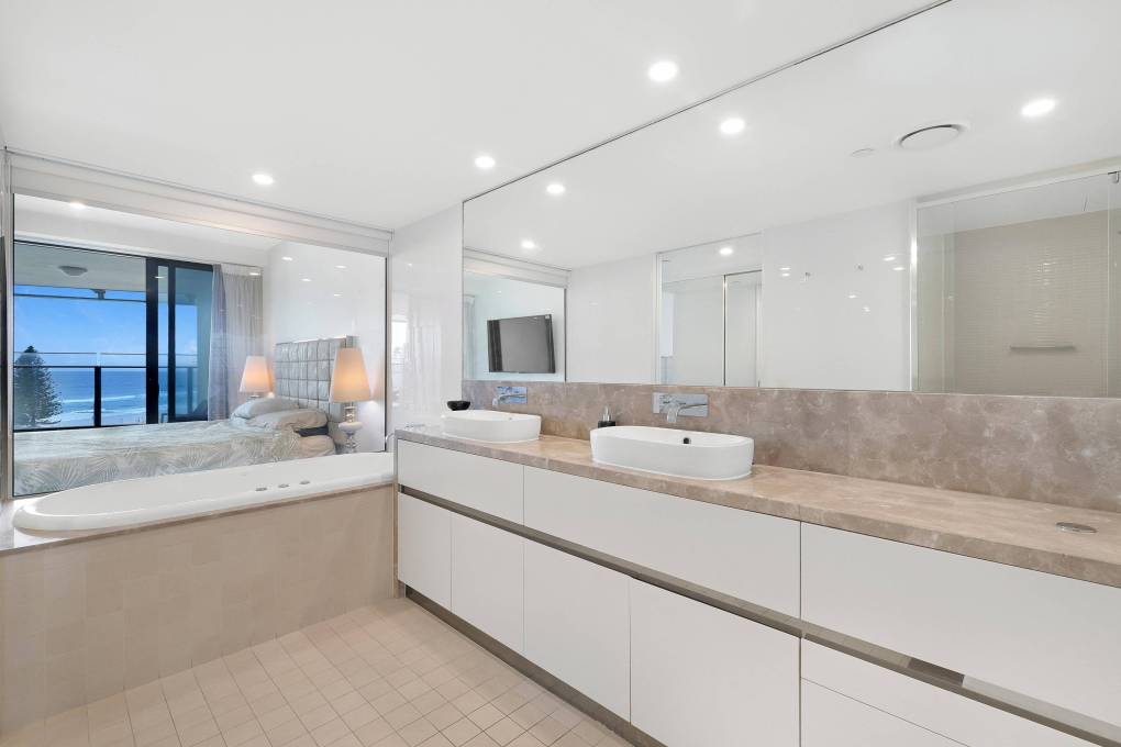 The master bedroom's ensuite contains a spa bath, shower, toilet and his and her basins.